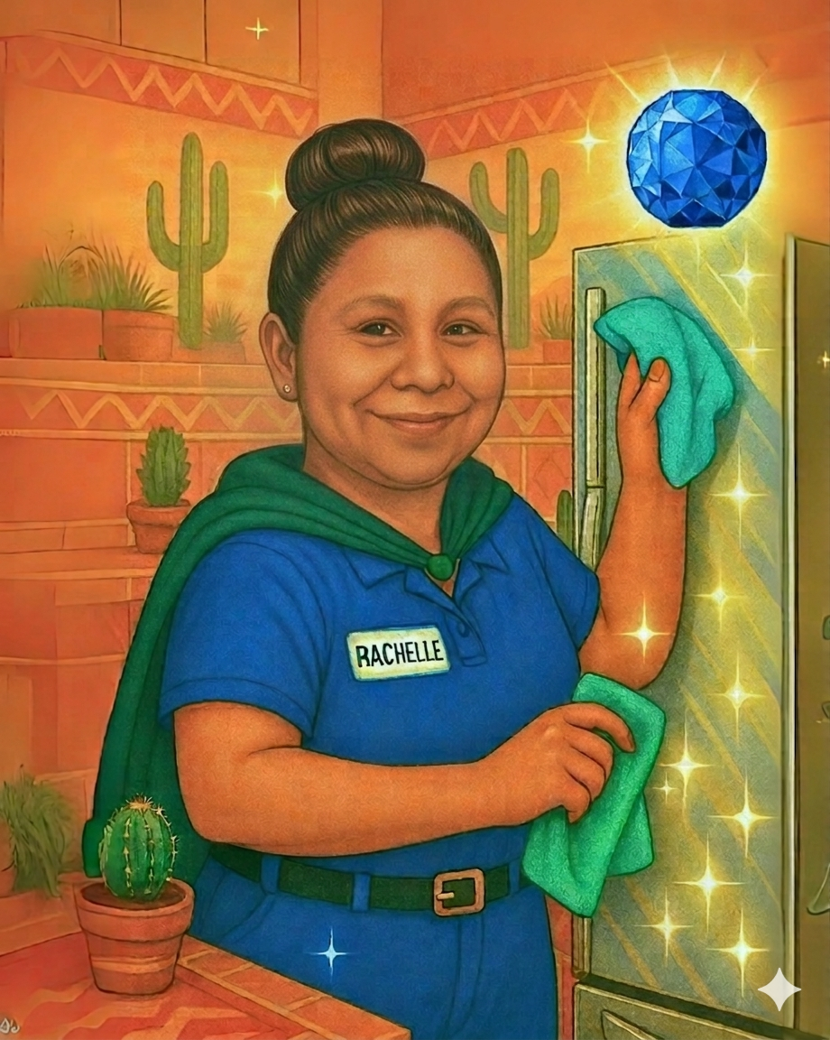Her favorite TV show is This Is Us, and she’s a loyal fan of Arizona’s own sports teams—the Cardinals and the Diamondbacks. When she’s in the zone, her must-have music is high-energy tracks from artists like Pitbull and Christina Aguilera. One thing she never misses during a clean? A mirror check. “No smudge left behind,” she insists.